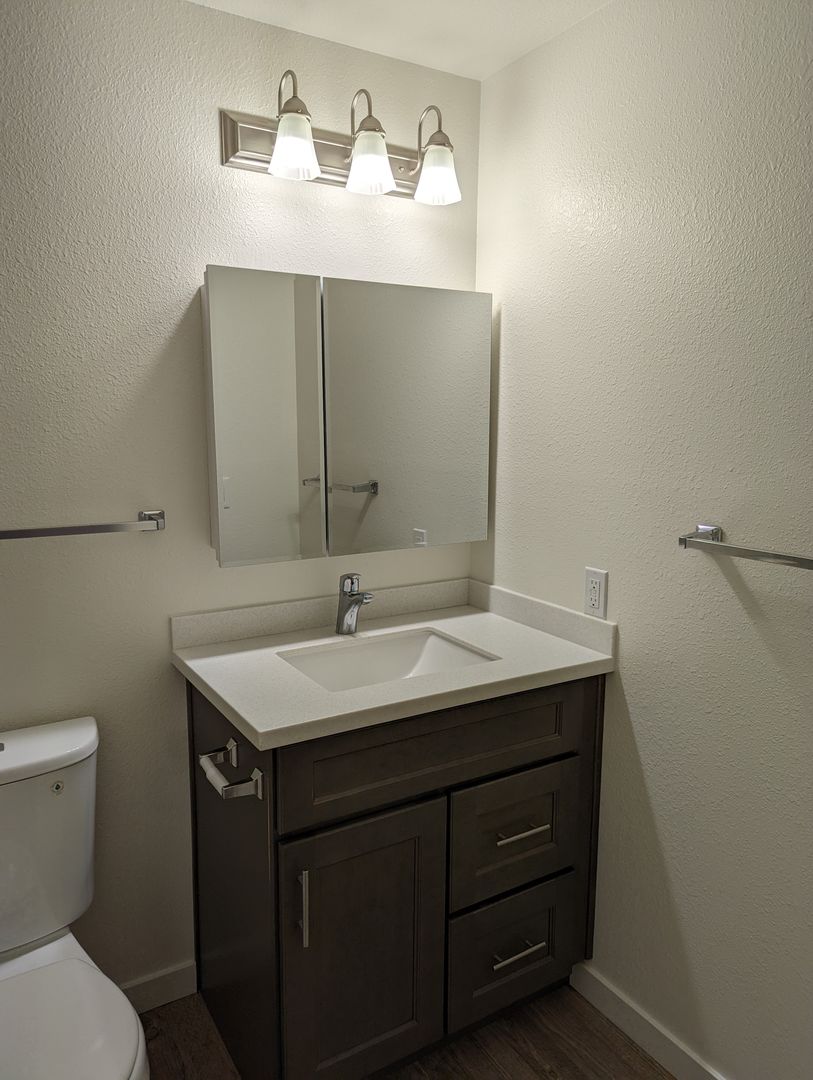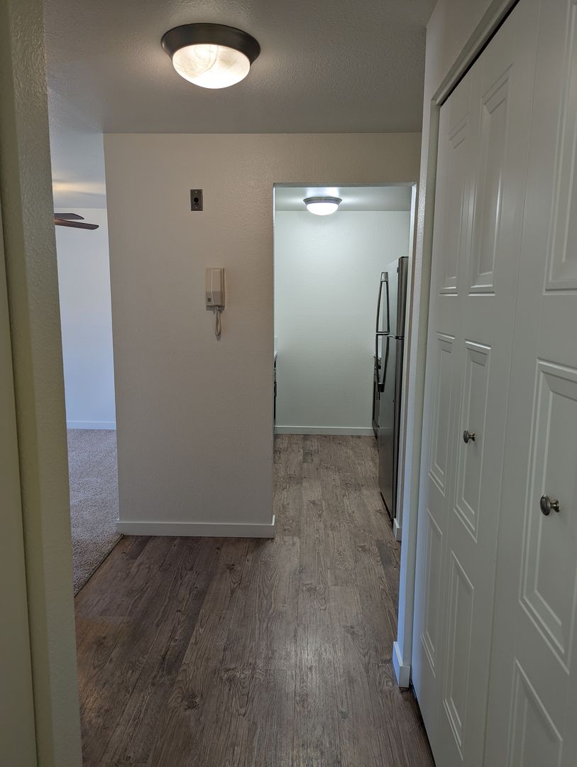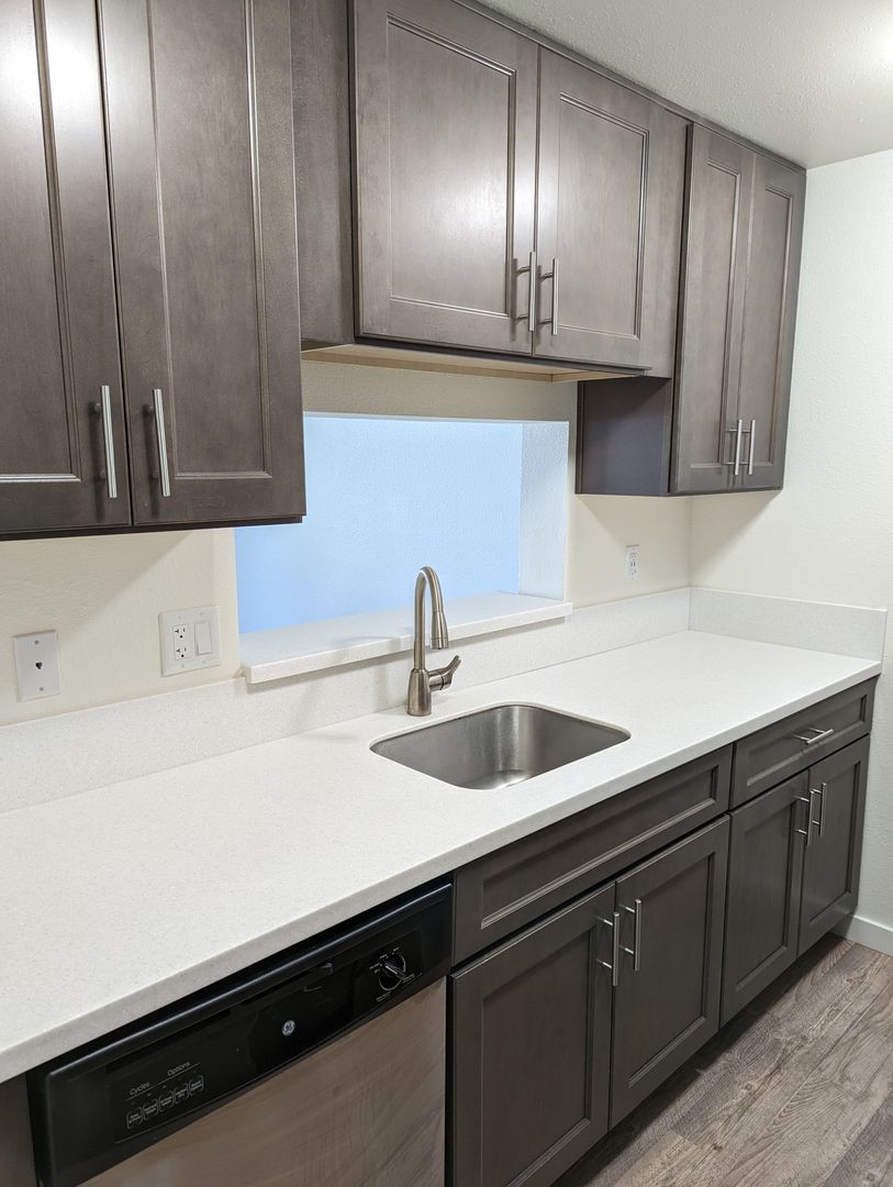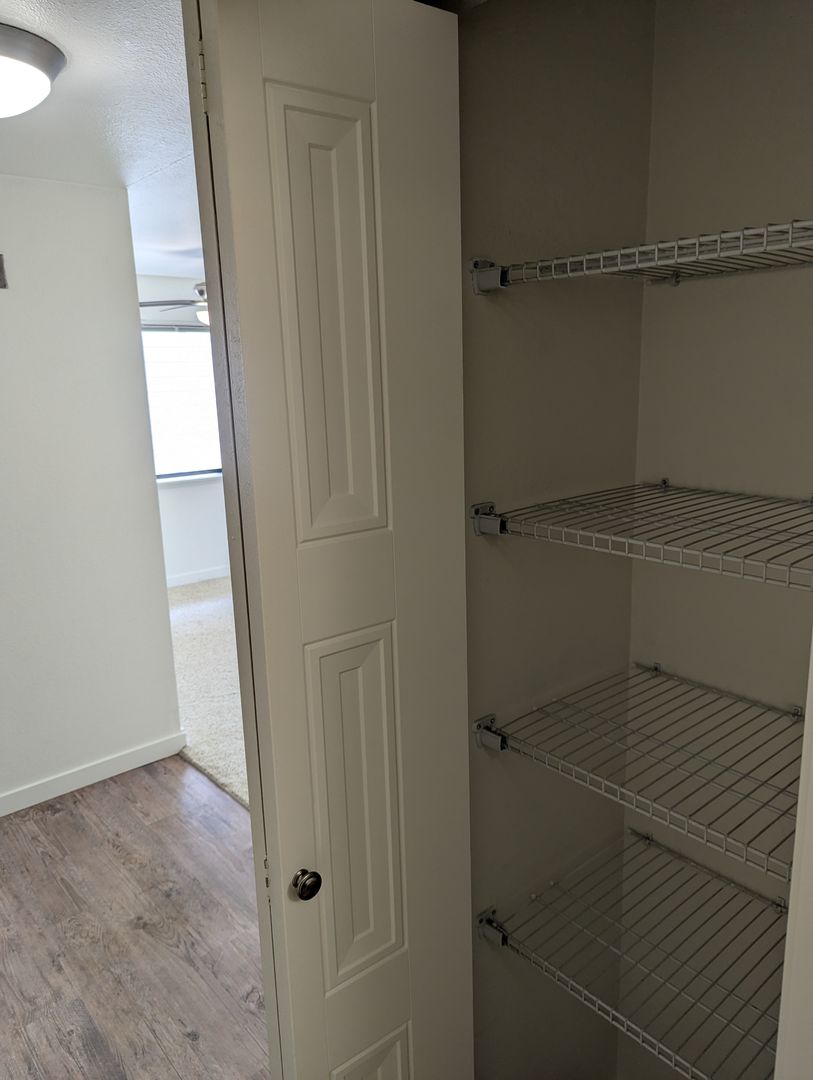 Our floor plans are designed with your comfort and enjoyment in mind. This newly remodeled apartment has stainless steel appliances, a full size in-unit washer and dryer, and dishwasher. All units have a balcony or patio with an extra storage closet, and an electric fireplace to cozy up to in the coming winter months.