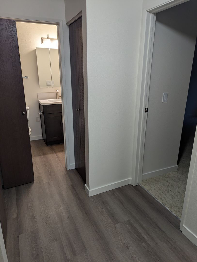Our floor plans are designed with your comfort and enjoyment in mind. This newly remodeled apartment has stainless steel appliances, including a brand new full size in-unit high efficiency front loading washer and dryer, and full size dishwasher. All units have a balcony or patio with an extra storage closet, and an electric fireplace to cozy up to in the coming winter months.